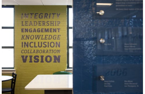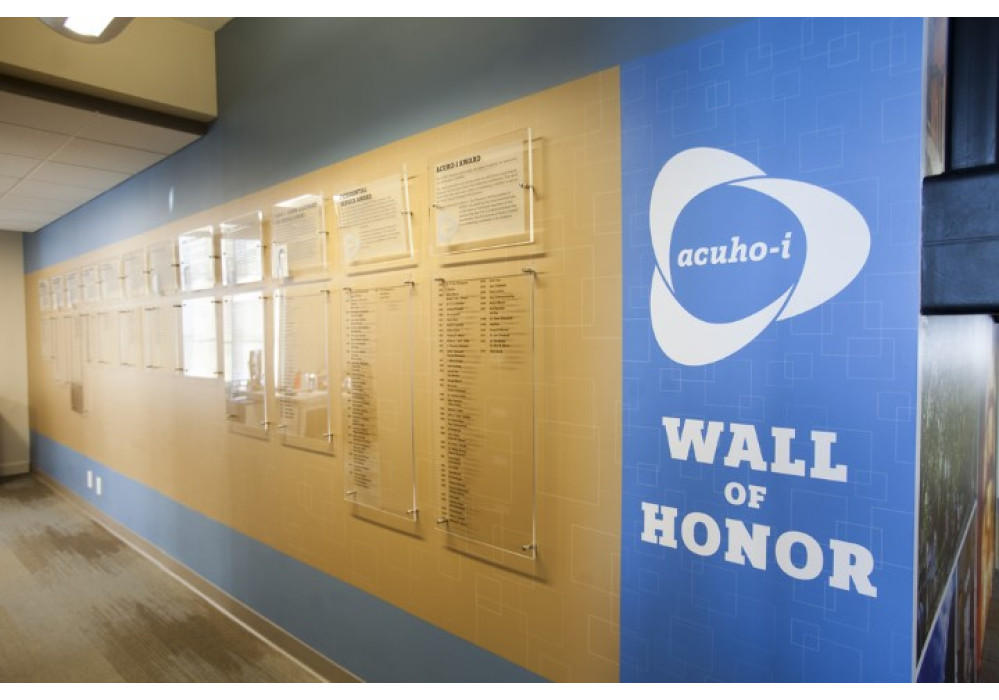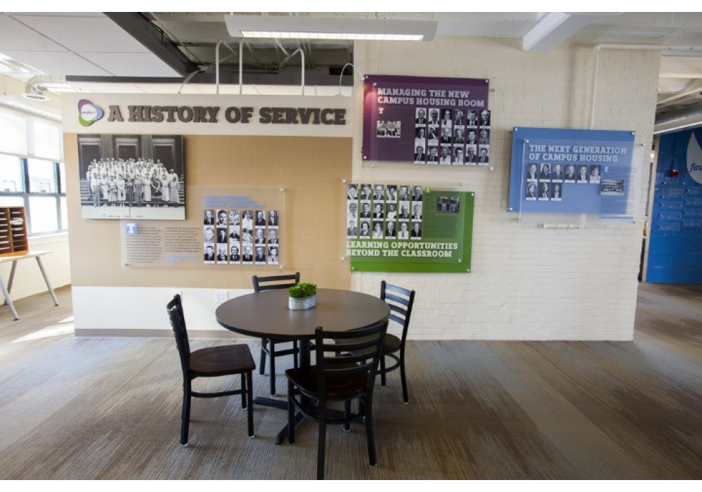 Aurora Exhibit Solutions was called in, long before the Orton building was renovated, to be part of the team to brandscape™ the headquarters. We were there through the demo dust to the grand opening and are still there to make revisions to keep the design alive! It was such a collaborative effort, that ACUHO-I’s staff received the first ever “FAVORITE CLIENT award” from Aurora’s staff. “It’s all about the LOVE”!