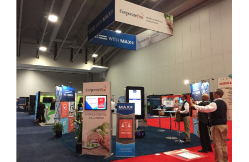 Aurora Exhibit Solutions manages Corporate One’s tradeshow assets…Tabletop, 10x10, 10x20, 10x30, 20x20 –structures and graphic change-outs, as well as show services and logistics.