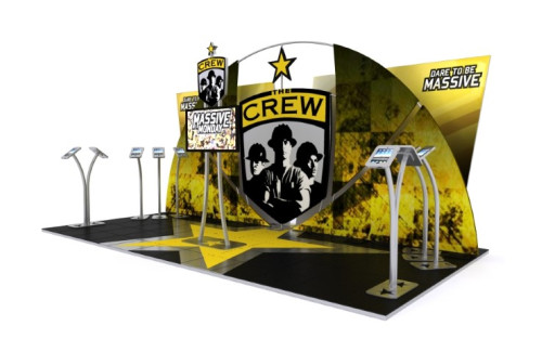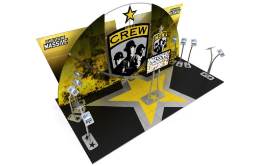 Early in the Crew’s history, Aurora partnered with “America’s hardest working team” for all of their outdoor activations outdoor tents, feather banners, partner sponsorship activations, and numerous media walls.